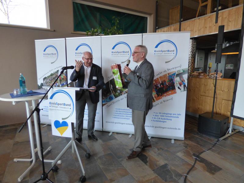 Eröffnet wurde der Empfang schwungvoll durch die inklusive Trommelgruppe „Hau Drupp“ des SFC Harz-Weser unter Leitung von Angelika Lindert. „Die Gruppe steht für das, was auch den KSB ausmacht“, begrüßte Klaus Dreßler, der Vorstandssprecher des KSB, das Publikum und insbesondere die Ehrengäste. Auf einen hochkarätigen Gast musste er dabei verzichten, denn Prof. Dr. Wolf-Rüdiger Umbach, der Präsident des Landessportbundes, fehlte coronabedingt.