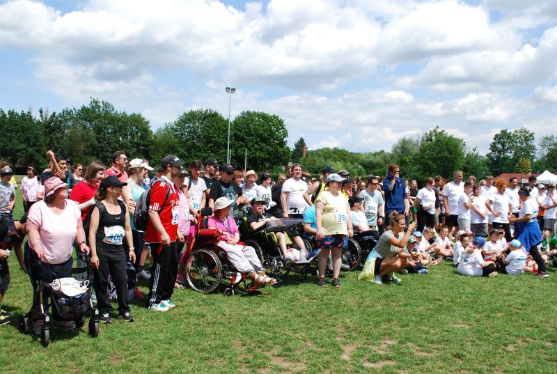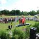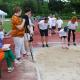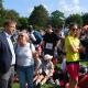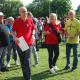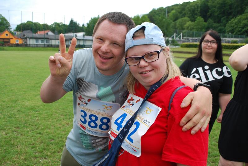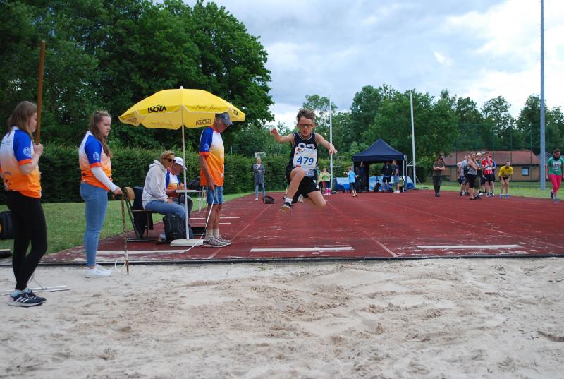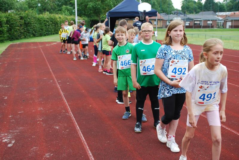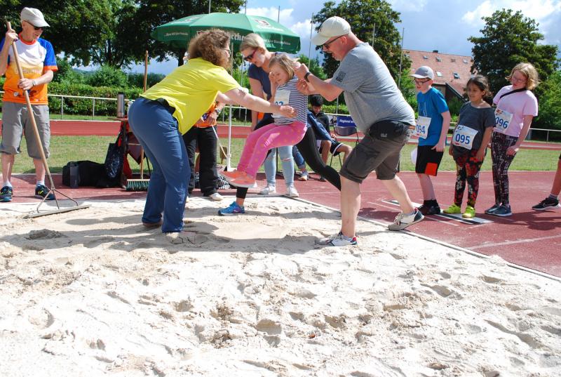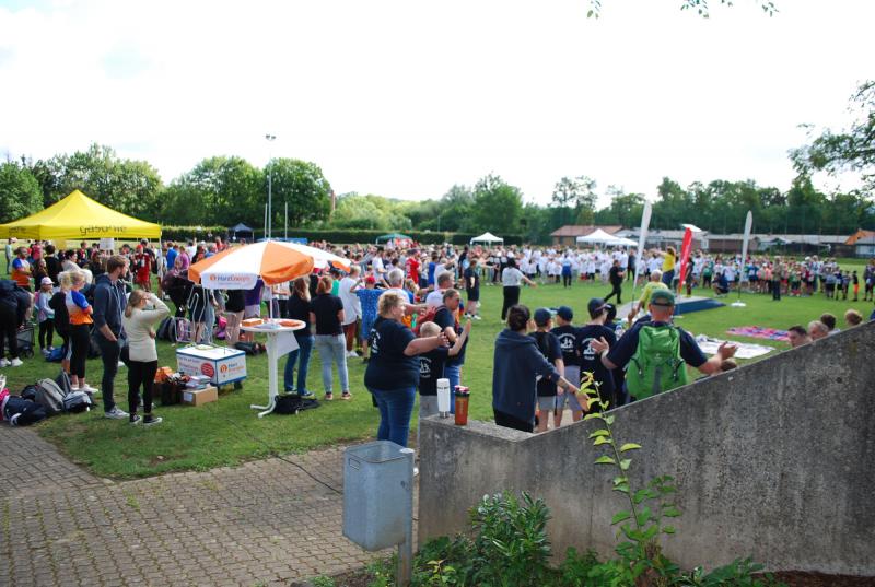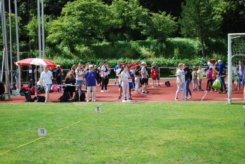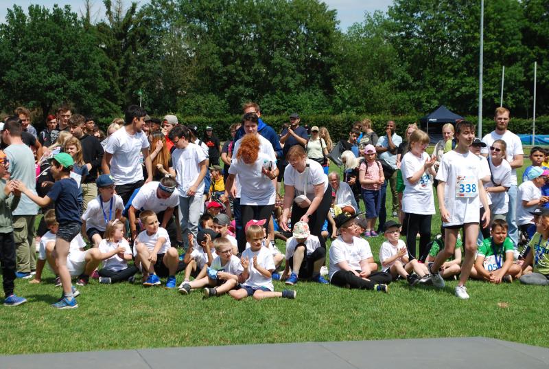Es war alles bestens vorbereitet im Jahnstadion. Die Sportgeräte waren ausgeteilt, die Disziplinstandorte durch die Prüfer*innen besetzt, Spiel- und Bewegungsstationen aufgebaut. Und so konnte die Begrüßung durch Osterodes Bürgermeister Jens Augat pünktlich starten. Augat begrüßte die jungen Sportler*innen und alle Helfenden. „Im Sport geht es oft um Siege und Pokale, aber heute geht es um gemeinsamen Spaß an der Bewegung und wichtige Begegnungen zwischen Menschen mit und ohne Behinderung. Und so wünsche ich euch einen tollen Tag“, sagte der Bürgermeister. Und anschließend gab es Ehrungen und Überraschungen. Thomas Toebe, Vorstandsvorsitzender der Sparkasse Osterode am Harz überreichte Schecks für die Schulen, die beim Sportabzeichenwettbewerb vordere Platzierungen erreichten. Und Klaus Dreßler überraschte Renate Wagner mit einer Blumenschale und dankte ihr für den jahrelangen ehrenamtlichen Einsatz und ganz besonders für ihr tolles Engagement für den SPORTIVATIONSTAG.