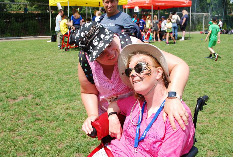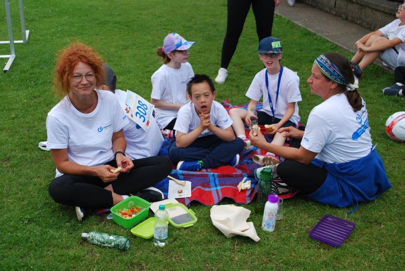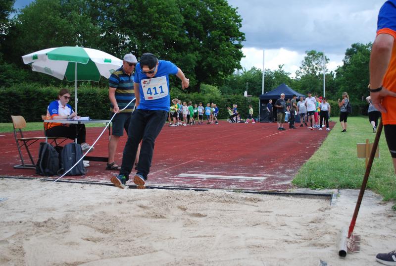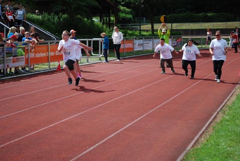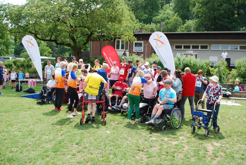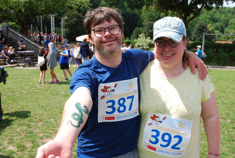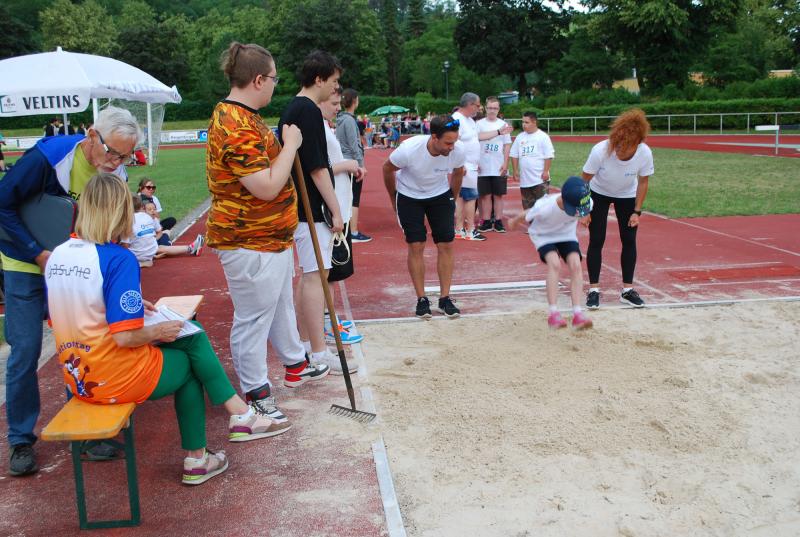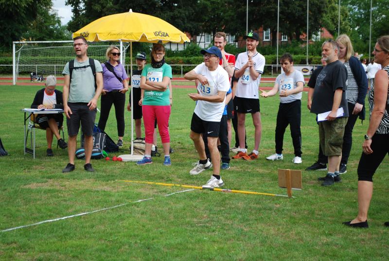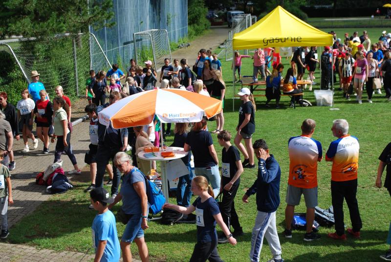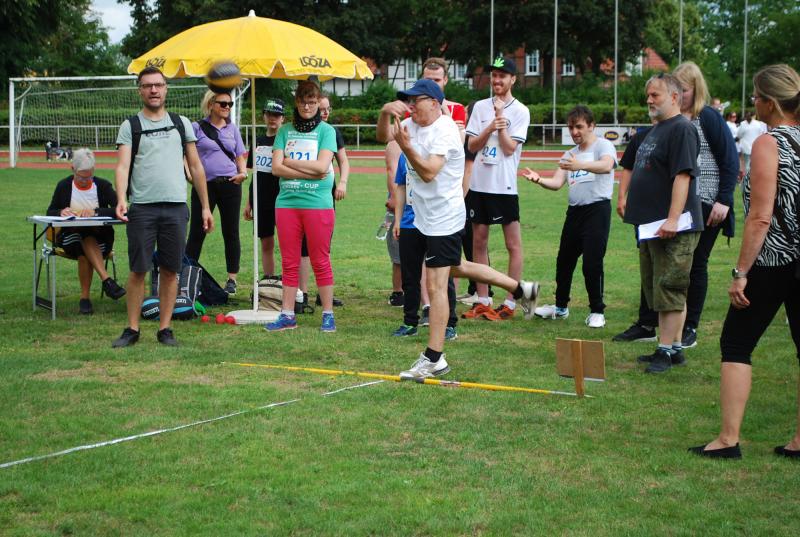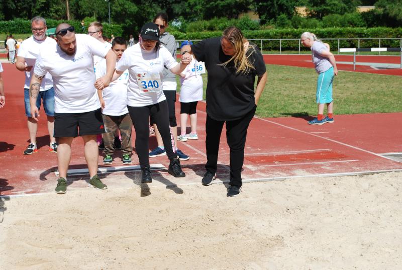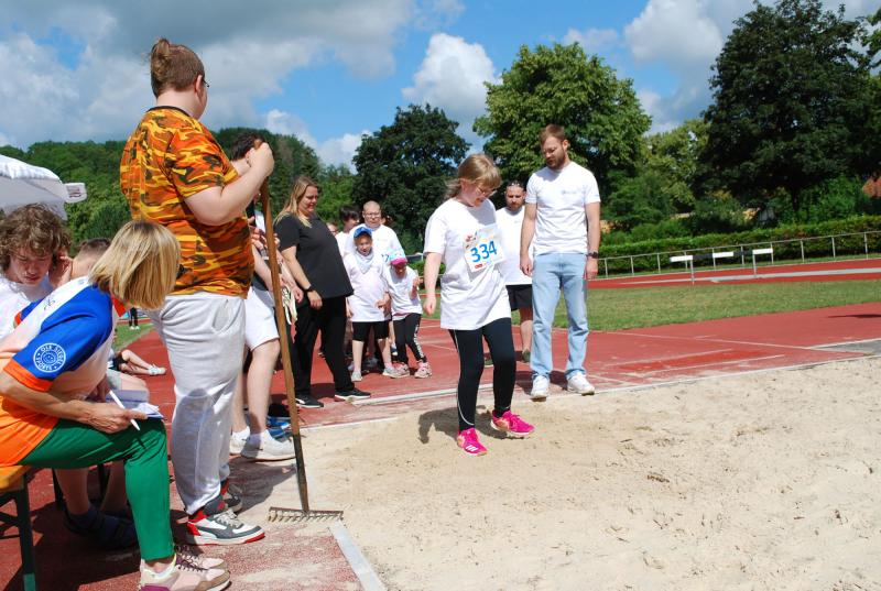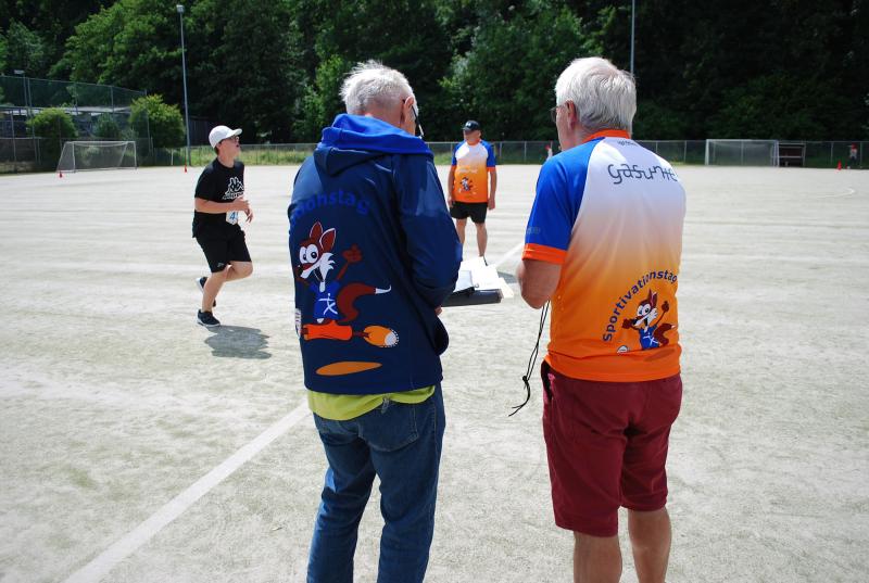 Das „Warmup“ war dann die erste Bewegungsaktion und die jungen Sportler*innen mit und ohne Behinderung starteten ihre Disziplinen und rannten, warfen, sprangen hoch und weit, bewiesen beim Zielwurf Augenmaß und wer die Energie hatte, gab auch im 800 oder 1500m-Lauf noch einmal ihr bzw. sein Bestes. Beim Spiel und Bewegungsfest waren das Glücksrad, der heiße Draht der Harz Energie, die Roller und der Basketballkorb am Stand des Sanitätshauses Otto Sturm und viele weitere attraktive Angebote sorgten für viel Abwechslung. Mittendrin und natürlich eine der Hauptattraktionen war BSN-Maskottchen SPURTI. Alles lief reibungslos ab - Dank der hervorragenden Organisation von Günter Thiele, Petra Graunke und dem Team des KSB Göttingen-Osterode. Viele Helfer*innen der Berufsbildenden Schulen II und der Muschinskyschule, unterstützen die Prüfer*innen aus den KSB-Vereinen hervorragend und sorgten so dafür, dass die Spiele- und Sportstationen ausreichend besetzt werden konnten, erklärte Organisationschef Günter Thiele.